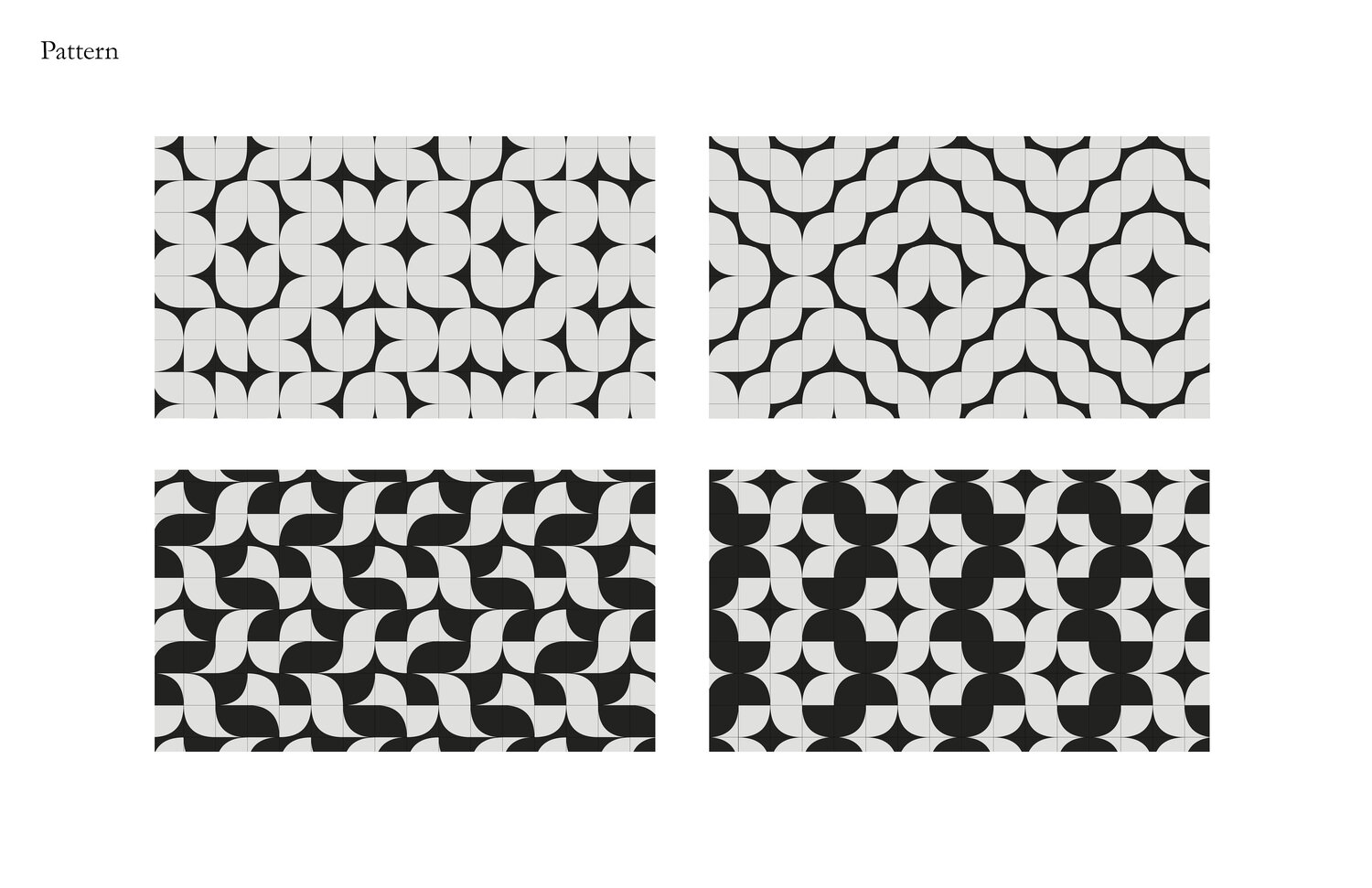 At first glance, the arrangement of over 10,000 custom-colored encaustic cement tiles alludes to a camouflage pattern. However, the graphic quality of the tile patterning and the geometry of the structure both blur and enhance its physical presence within the jungle. The simple quarter-arc graphic of the tile intentionally mimics the shadow pattern created by the staggered blocks, creating an opportunity for the colorful skin of the building to either reinforce or undermine the physical reality. Two distinct patterns shift and merge across the facades of the building, highlighting entrances by aligning uniformly on adjacent walls or mirroring across the angled facades to create numerous local symmetries.